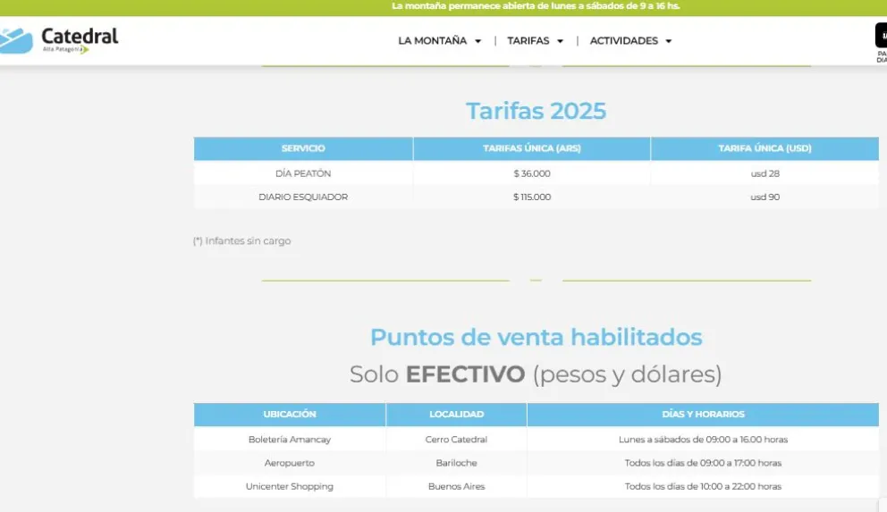 Catedral Alta Patagonia comenzó la comercialización de pases diarios de esquí para la temporada de invierno 2025. El valor fijado por la empresa fue de $115.000 por jornada. La iniciativa busca ordenar la afluencia de esquiadores y visitantes.
