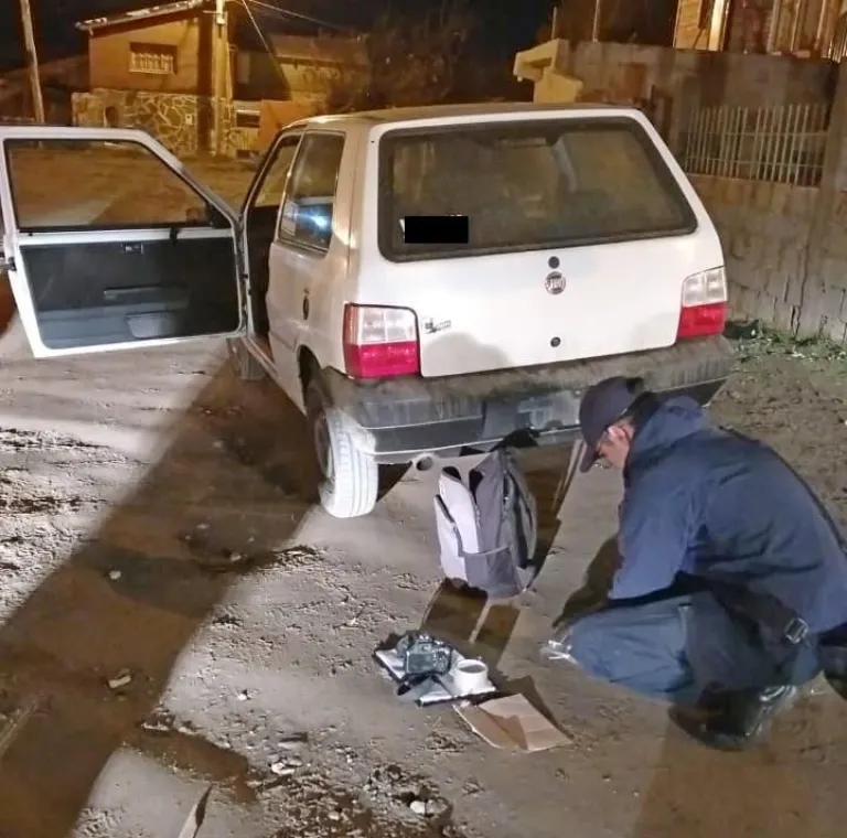 Una patrulla acudió de inmediato y los sospechosos, al advertir su presencia, emprendieron la fuga a toda velocidad, siendo alcanzados en Felipe Laguna y Sarmiento.