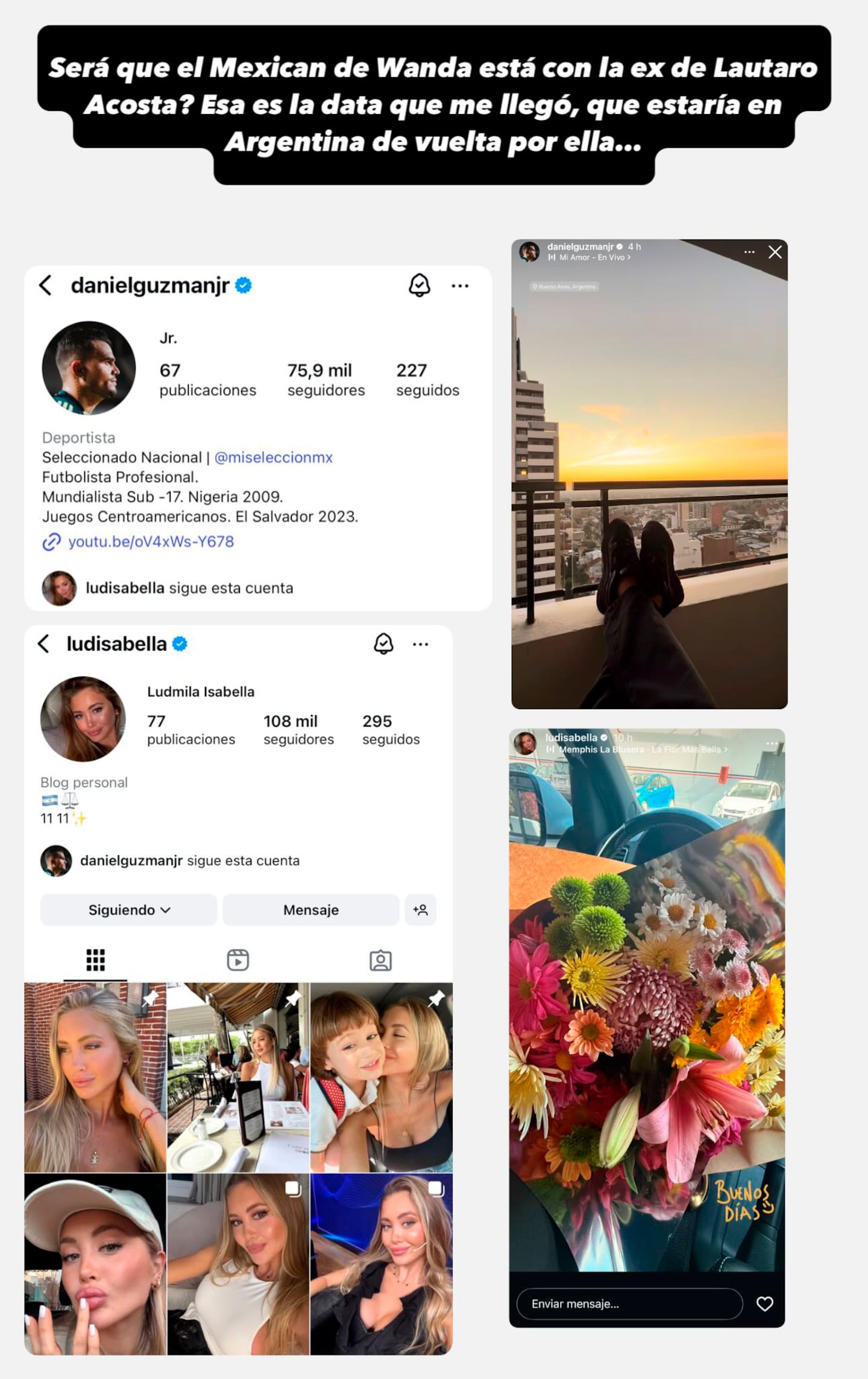 En el universo de los romances cruzados entre celebridades, redes sociales y futbolistas, siempre hay lugar para una nueva vuelta de tuerca. Hace apenas unas semanas, el nombre del futbolista mexicano Daniel Guzmán Jr. empezó a sonar con fuerza en los medios argentinos luego de que intercambiara llamativos mensajes con Wanda Nara. Sin embargo, todo indica que los indicios eran solo una pista falsa: ahora, todas las miradas apuntan hacia Ludmila, la ex pareja de Lautaro Acosta.