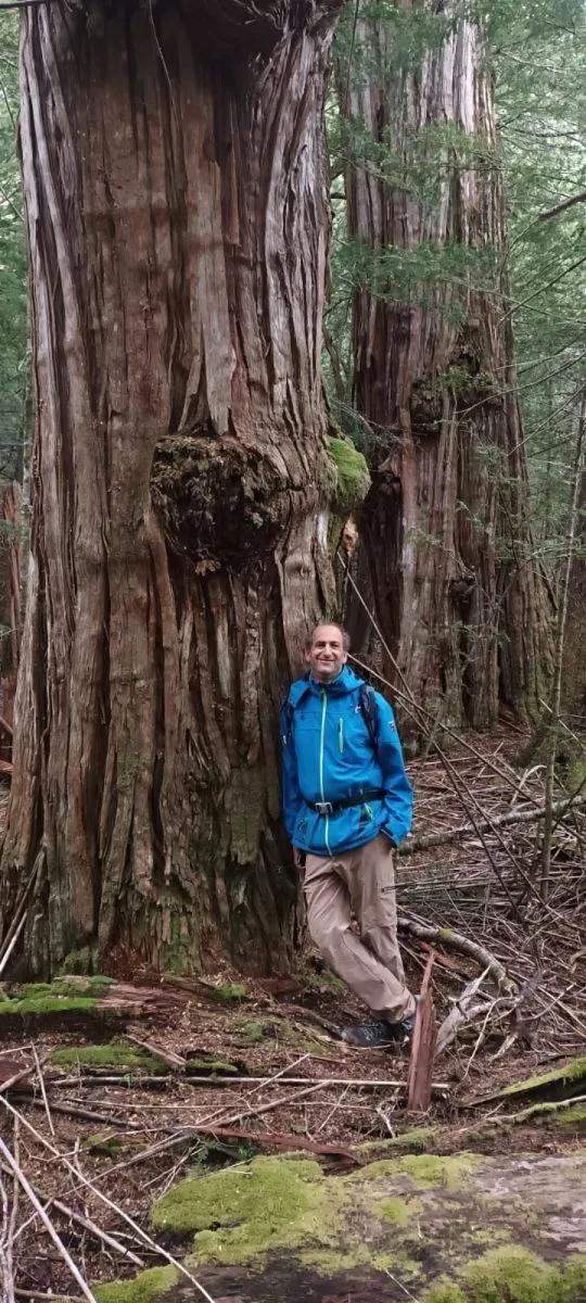 Nuestro interlocutor junto a un añoso alerce.