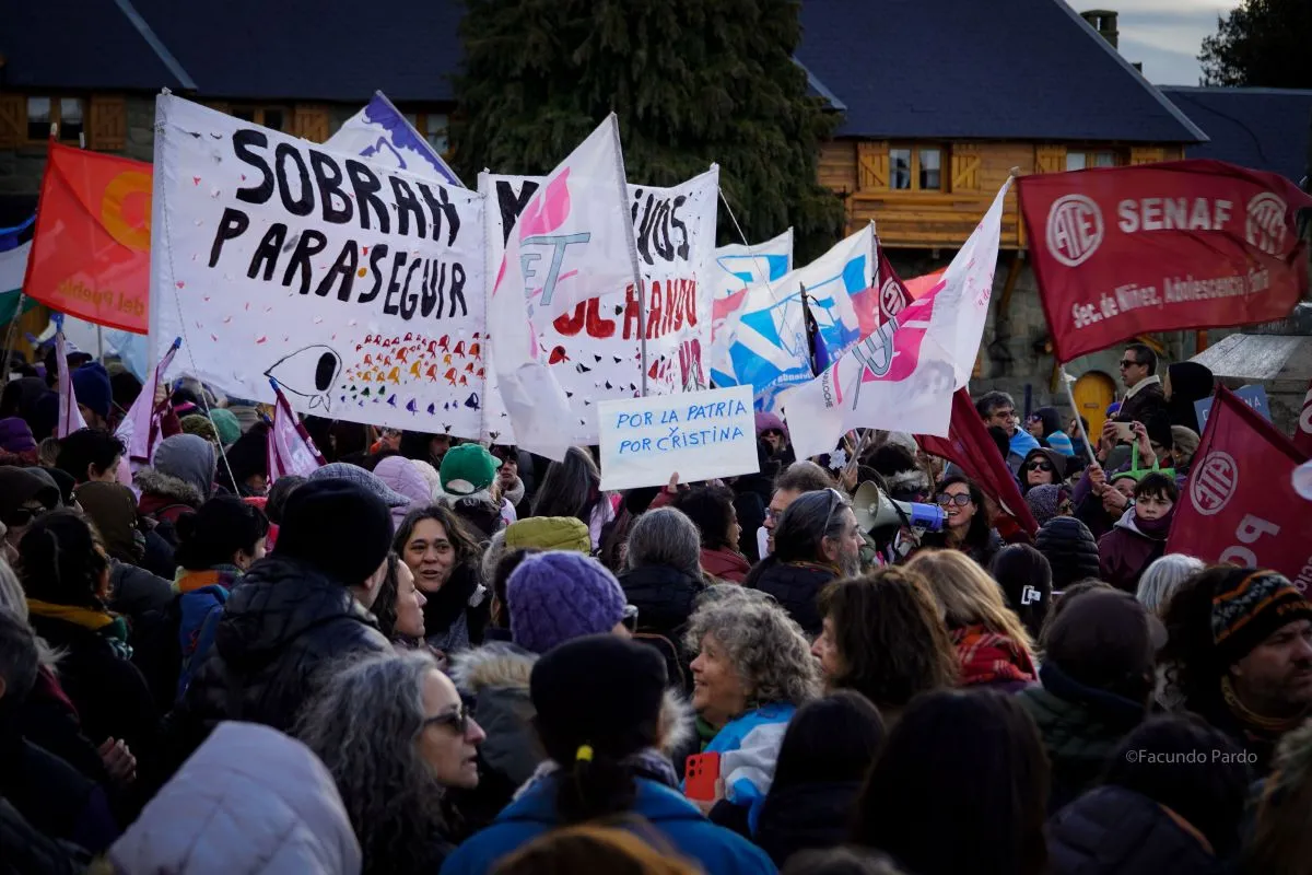 Pareció como si en el pedido por Cristina Fernández hubiesen convergido varios reclamos, lo que se reflejó en un cartel que decía: “Unidad de todas las luchas”. Aunque hay que aclarar que esa frase no se cumplió a rajatabla, como quedó demostrado cuando arribó al Centro Cívico una gran columna que había salido de la sede local de la Unión de Trabajadores de la Educación de Río Negro (Unter) –en el marco de una jornada de medida de fuerza–, donde también había presencia de la Asociación Trabajadores del Estado (ATE) e integrantes del Frente de Izquierda y de Trabajadores - Unidad. Así, de esos manifestantes, tras marchar por Mitre, los que pertenecían a Unter y ATE se sumaron al reclamo por Cristina, mientras que los miembros de la citada coalición de izquierda optaron por retirarse. “No vinimos para ser parte del acto ‘proselitista’”, indicó, antes de irse, una mujer.