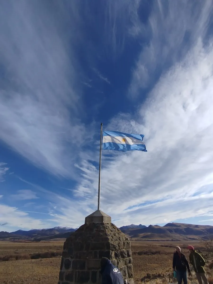 De tal forma, en 2023 se acercaron hasta el lugar, donde izaron la bandera y cantaron el Himno Nacional. Sucedió también el año pasado, y el asunto se repitió el último 20 de Junio. Una vez más, la “pedaleada” patriótica alcanzó ese punto particular de la estepa, donde el viento parece soplar sólo para ondear la celeste y blanca. Asimismo, volvió a sonar la canción patria (en esta ocasión, a partir de una interpretación en flauta) y se repartió chocolate caliente.