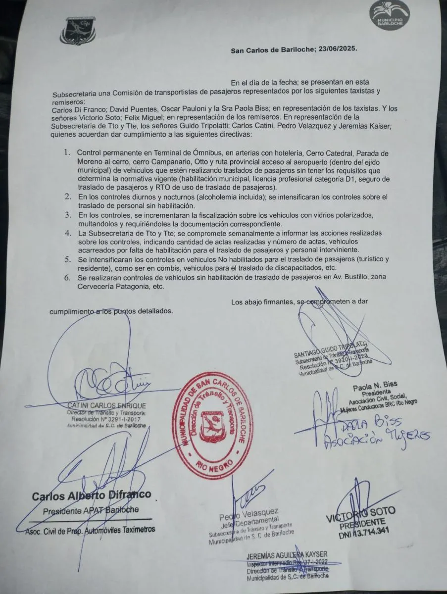 Carlos Catini, director de Tránsito y Transporte, que solicitó redactar el acta de compromiso de trabajo, afirmó que “la fiscalización no es solamente a los Uber, sino a todos los que están trasladando personas sin habilitación municipal, se la vamos a pasar a ustedes” concluyó.