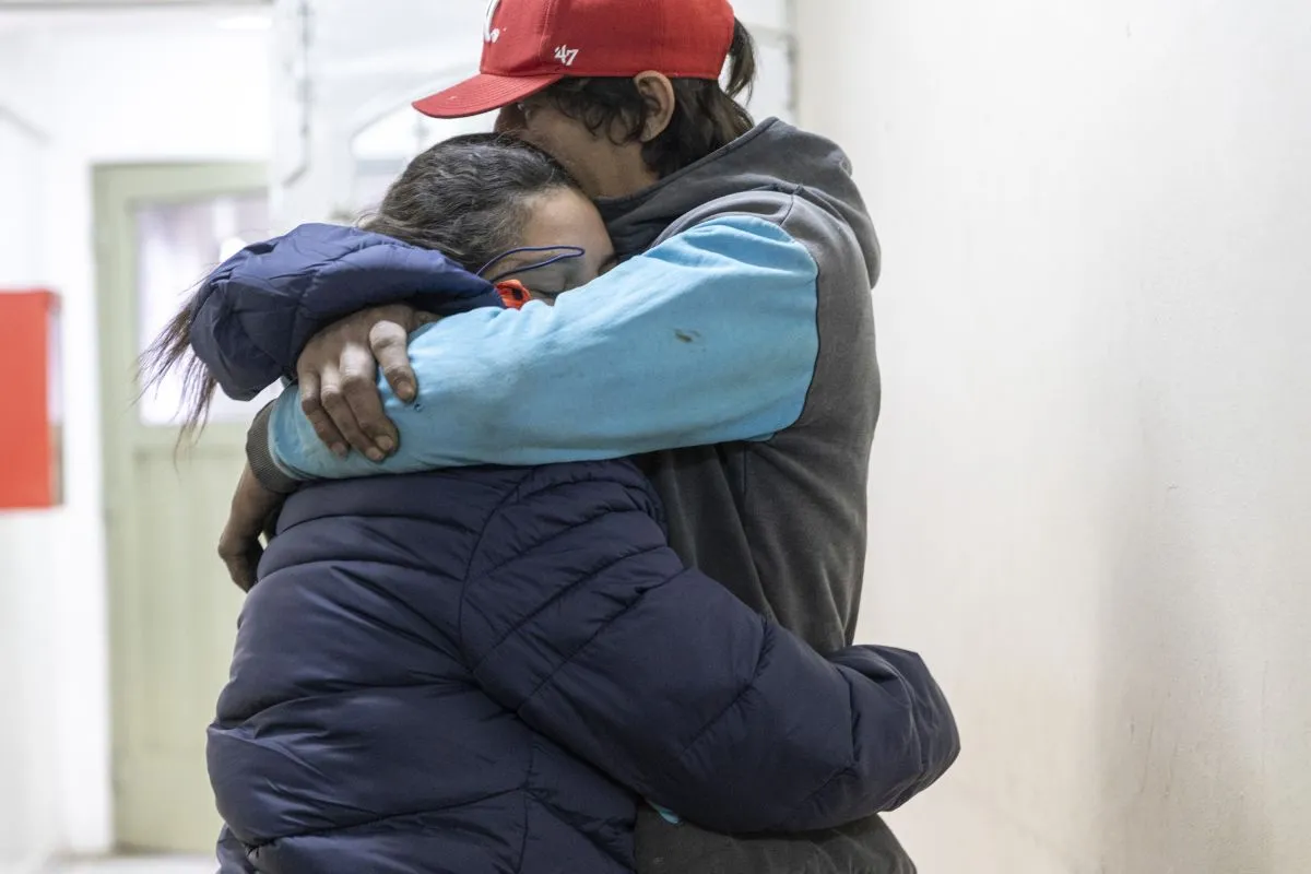 En medio de colchones y donaciones emergía el dolor de la madre de Natalia, que no podía dejar de llorar y recibir abrazos, mientras esperaba novedades sobre la autopsia.