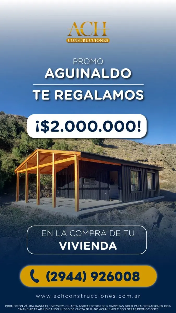 ACH Construcciones continúa ofreciendo asesoramiento personalizado y sin compromiso. Para acceder a más información, promociones y recibir una carpeta completa con el detalle de los beneficios vigentes, se puede llamar o enviar un mensaje al 2944 926008