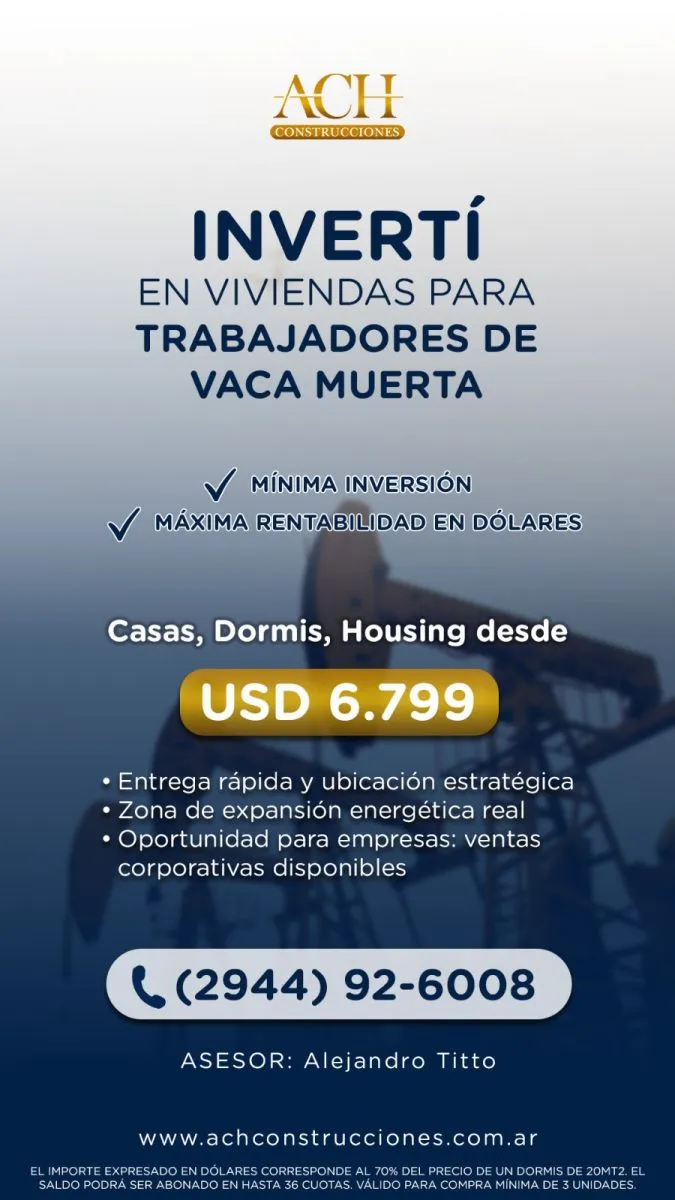La entrevista también incluyó una propuesta para inversores interesados en proyectos de alquiler: “Para quienes quieran invertir, por ejemplo, en la zona de Vaca Muerta, estamos ofreciendo tipologías tipo monoambiente, de 20 metros cuadrados, ideales para trabajadores del petróleo. Con el 70% del valor de una vivienda estándar se puede acceder a 2, 3 o más unidades para renta”, señaló.