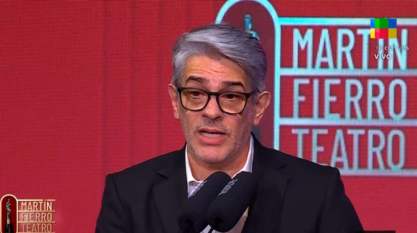El actor fue convocado al escenario para recibir el premio al Mejor Actor Protagónico Comercial. Una vez arriba del escenario, comenzó agradeciendo a todos los que hicieron posible la obtención del premio: “Gracias. ¡Qué emoción! Estoy sorprendido. Le quiero agradecer a Aptra. Celebro esta iniciativa de un Martín Fierro de Teatro”.