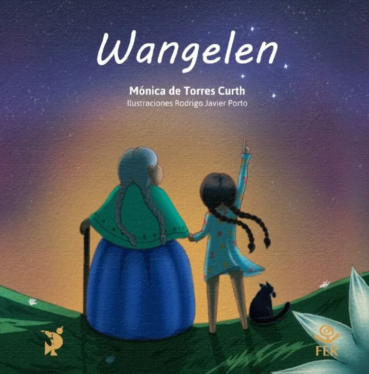 Mónica: wangelen quiere decir “estrella” y precisamente es el nombre de un poema para las infancias escrito por Liliana Ancalao. También de una canción bellísimamente interpretada por Anahí Rayen Mariluan. En mi cuento, Juanita encuentra en la biblioteca de su escuela un libro que se llama Wangelen y tiene su apellido en la tapa. Pero ella no puede leerlo porque no entiende lo que dice. La maestra le explica que está escrito en otro idioma y que, para entender, hay otros libros que se llaman diccionarios. Como en la escuela no hay un diccionario mapuzungun español, la maestra le propone que ella haga uno. Para eso Juanita le pide ayuda a su abuela. Eso la conecta con su propio deseo de ser escritora, pero también con su origen. Juanita empieza por traducir junto a su abuela los primeros versos del poema de Liliana: Wenu mew müley wangelen, ta iñ pepi afmatual: Hay estrellas en el cielo, que podemos admirar.