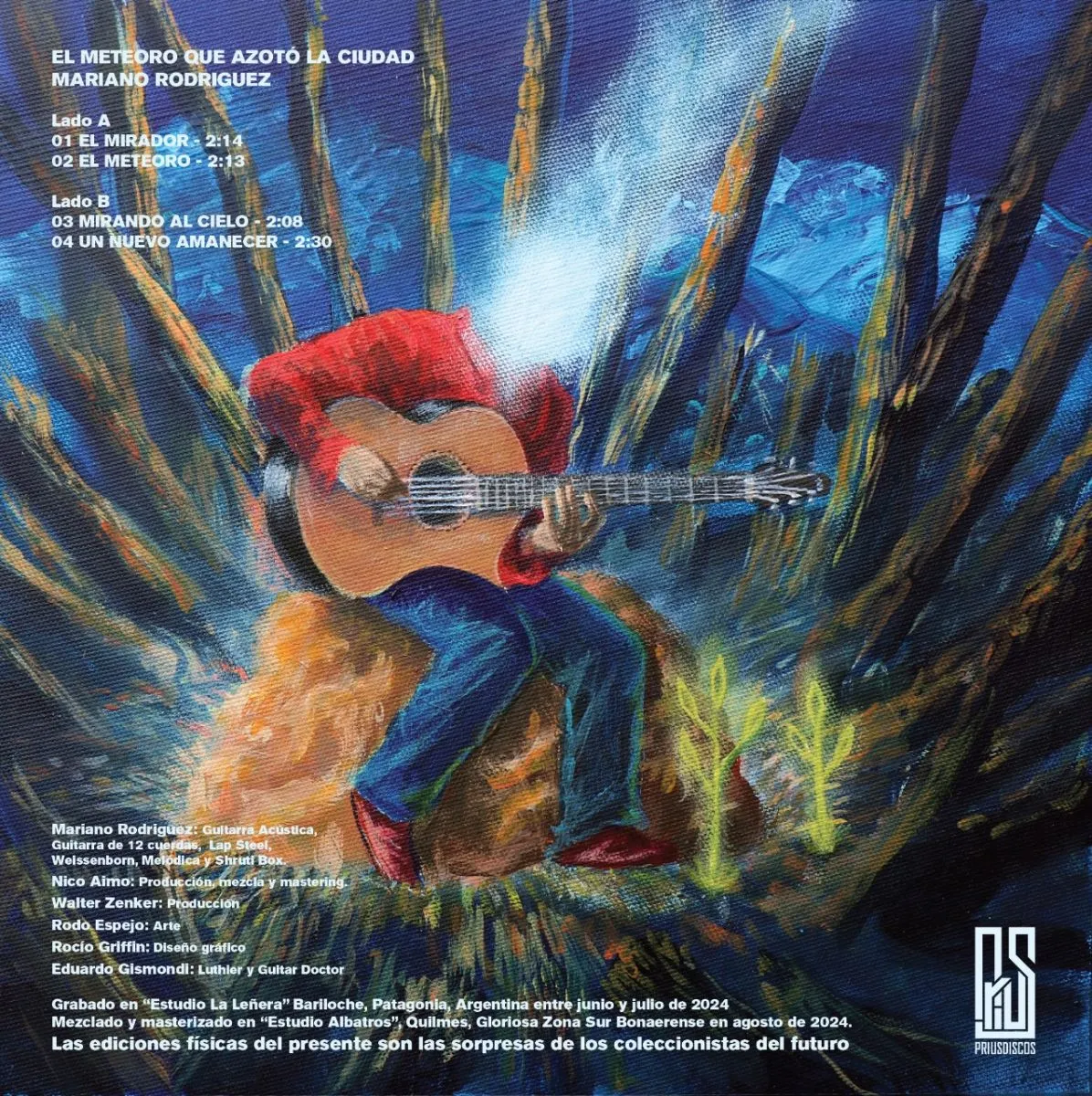 No es que su música no pueda encontrarse en plataformas digitales, pero si se tiene en cuenta la militancia de Mariano Rodríguez por los formatos físicos, era previsible que se convirtiera en el primer músico de Bariloche en editarla en vinilo. El lanzamiento se titula “El meteoro que azotó la ciudad” y llamativamente también se concretó en casete, versión que a los temas originales les suma cuatro remixes. La obra que editó Prius Discos se irá a presentar el próximo sábado (5 de julio) desde las 21 en Inefable Café, cita con varios ingredientes desusados.