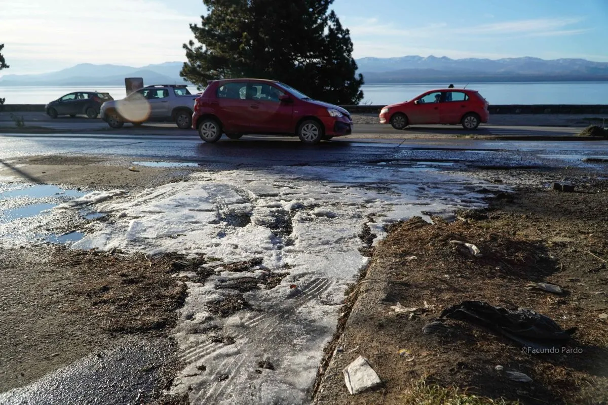 La ola polar que afecta a Bariloche y localidades de la región provoca que cualquier perdida en la calle o vereda se convierta en una pista de hielo, lo que provoca complicaciones para la circulación urbano.