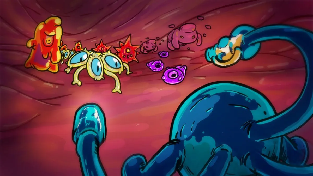 “La boda de Gaylord (la bacteria protagonista) fue arruinada por una jeringa, así que ahora estás recorriendo el recto de un tipo con un arma hecha de ADN.”