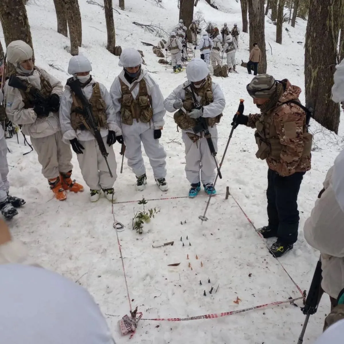 Otra de las prácticas es tiro con munición de guerra en terreno nevado, se hace en Esquel y participa todo el curso durante 15 días, muy exigente y agotador.
