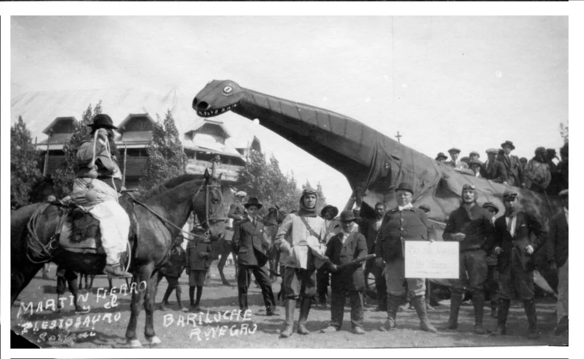 "Martín Fierro y el plesiosaurio". Bariloche, 1924. Foto: Soriani. Museo de la Patagonia.