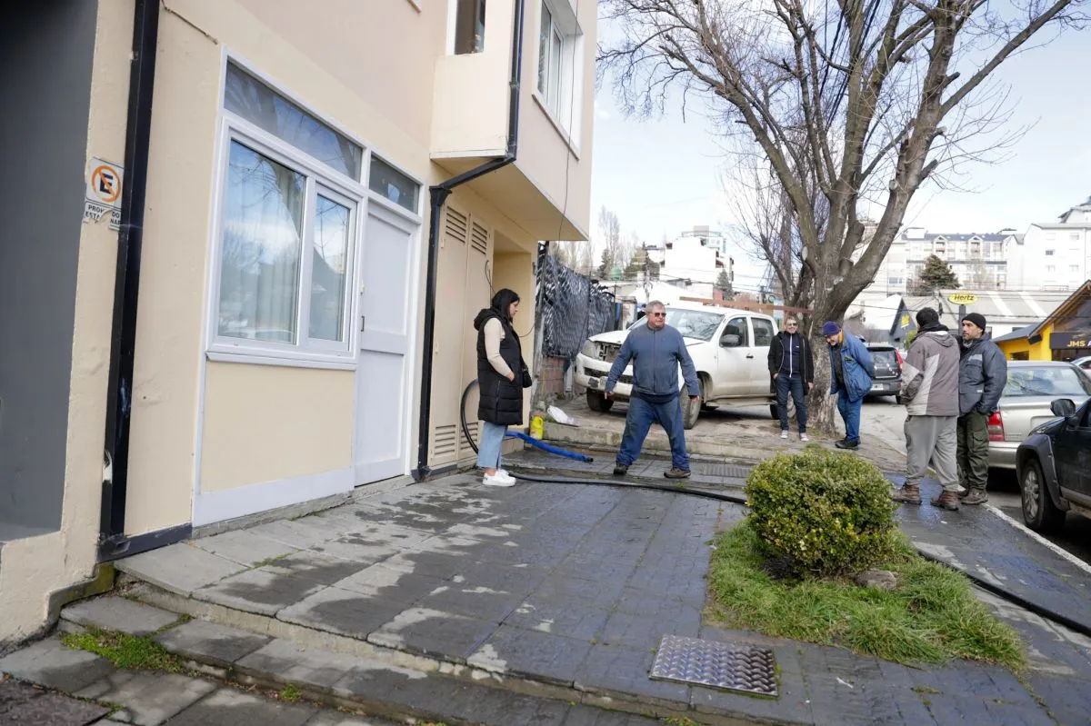 El agua brotaba con mucha fuerza y esto llevó a que en pocos minutos, se comenzara a inundar la cochera del edificio, alcanzando a los vehículos estacionados y todo lo que guardan quienes viven allí. Fabiana, es una de las vecinas que muy molesta con la situación comentó a El Cordillerano cómo se fueron sucediendo las cosas “desde las 8:40 comenzamos a llamar a Protección Civil para pedir que venga personal de Aguas Rionegrinas pero eran las 11 de la mañana y aún no se acercaban”.