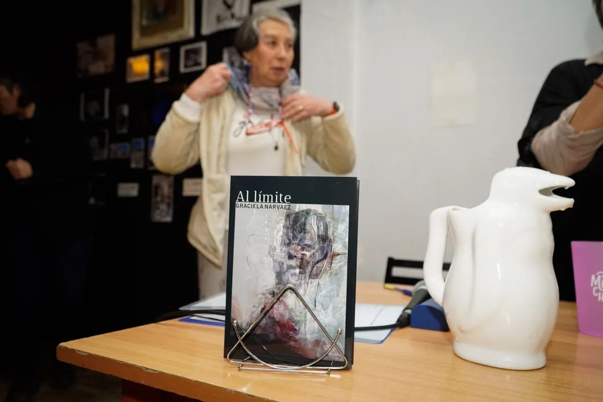 También fue de la partida Marcelo Gilabert, autor de la imagen de portada y de otra ilustración interior del libro. El artista —y también arquitecto— compartió con el público el modo de generar sus obras, además de dialogar con la propia Graciela acerca de lo que se ve en la tapa, donde se refleja una mirada particular que remite a la etapa siniestra de la última dictadura, tema que también es tocado en los cuentos de Al límite. En este punto, debe recordarse que la escritora llegó a Bariloche con su marido en 1979, como una forma de liberarse del avasallamiento que se vivía en su Córdoba natal, donde la represión se llevaba adelante con singular fiereza. “Considero que aquí nací de nuevo”, le dijo a este cronista días atrás, al evocar aquellos tiempos.