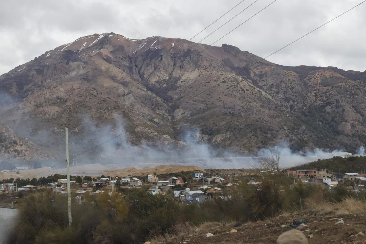 El siniestro ígneo se desató este mediodía en el Vertedero Municipal de Bariloche. El fuego se expandió rápidamente por los fuertes vientos. Continúan trabajando en la zona en un gran despliegue de seguridad para contener el foco.