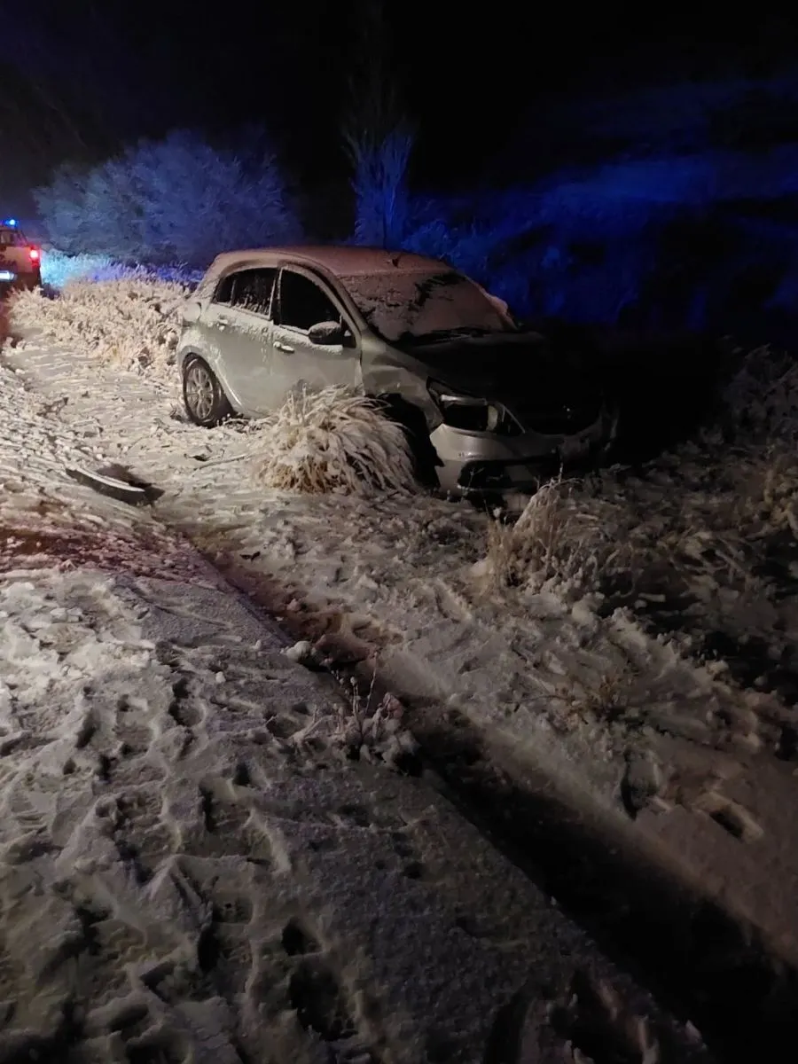 Dos autos colisionaron por las condiciones de la calzada con hielo y nieve. Uno de los conductores fue derivado al hospital de Piedra del Águila y la ruta, aunque cortada, seguía siendo transitada.
