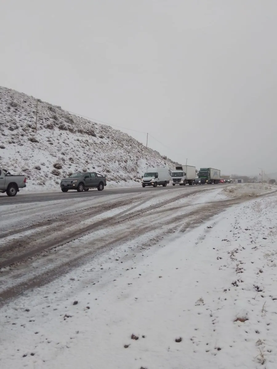 Este sábado, la Ruta Nacional 237 presenta condiciones complicadas para circular tras las intensas nevadas registradas en la región. La calzada se encuentra con sectores con hielo y nieve, por lo que se recomienda extremar las medidas de precaución a quienes deban transitar por la zona.
