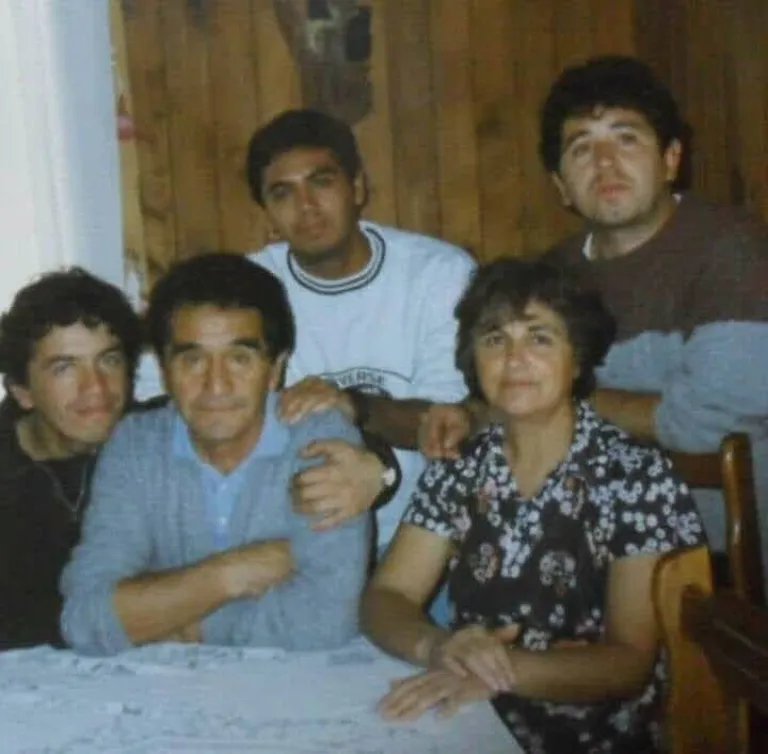 Mario, junto a sus padres y hermanos.