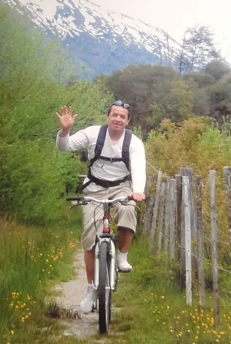 En bicicleta, otra de las pasiones de Mario.