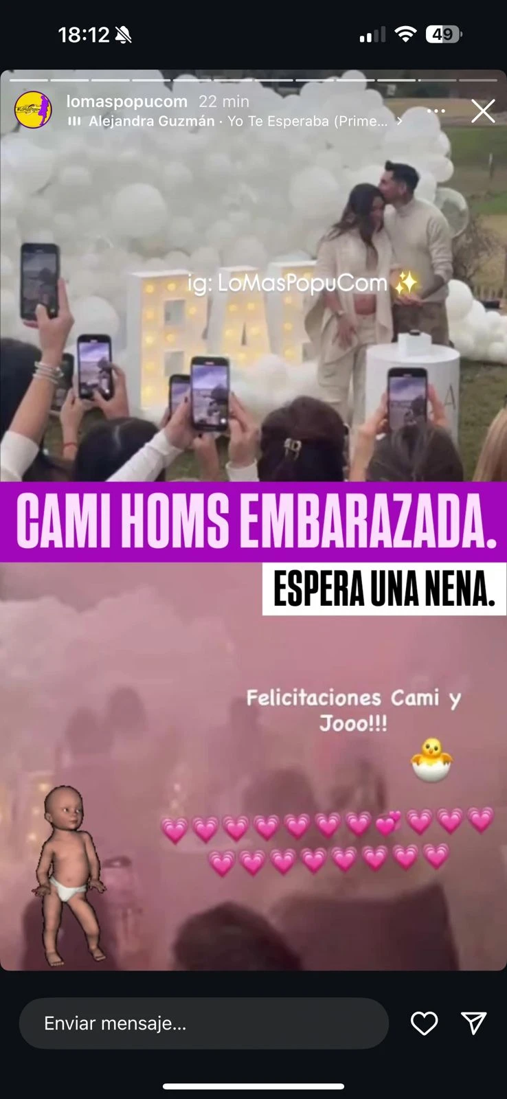 En las últimas semanas, la hija del empresario de moda se mostró más reservada en sus redes sociales, compartiendo fotos más cerradas o con ropa más holgada, lo que llevó a que muchos interpreten que estaría escondiendo una posible gestación. Aunque ni Camila Homs ni José "el Principito" Sosa, su pareja y futbolista de Estudiantes de La Plata, confirmaron nada, algunos medios aseguran que la familia y amigos más cercanos ya conocen la noticia, que la pareja prefiere mantener en privado por ahora.