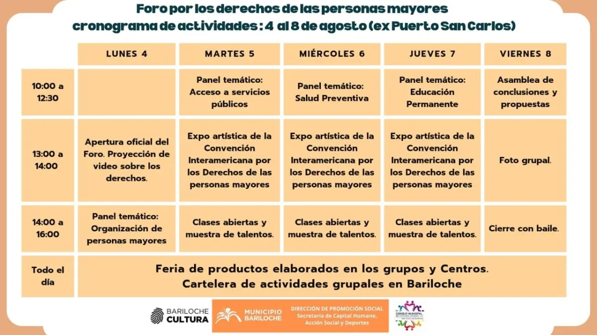Organizado por la Dirección de Promoción Social de la Municipalidad de San Carlos de Bariloche, con el acompañamiento de Bariloche Cultura y el Consejo Municipal de Personas Mayores, se trata de un espacio abierto a la comunidad para visibilizar, reflexionar y construir colectivamente en torno a las realidades y derechos de las personas mayores.