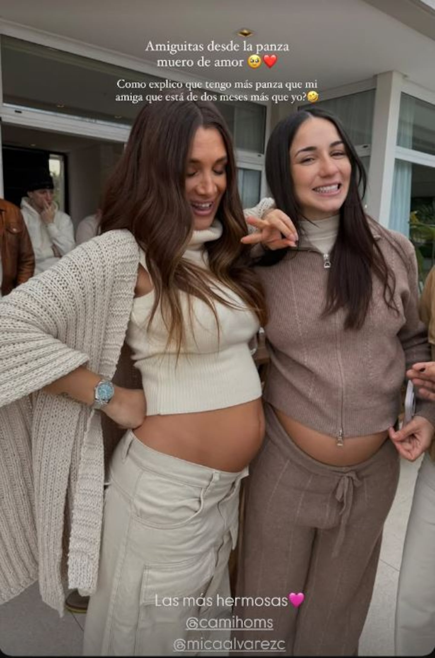 “Amiguitas desde la panza, muero de amor”, escribió Homs junto a una foto donde se la ve posando sonriente con una amiga que también está embarazada. Y, como no podía faltar su toque de humor, se despachó con un comentario que provocó ternura y risas: “Cómo explico que tengo más panza que mi amuga que está de dos meses más que yo”.