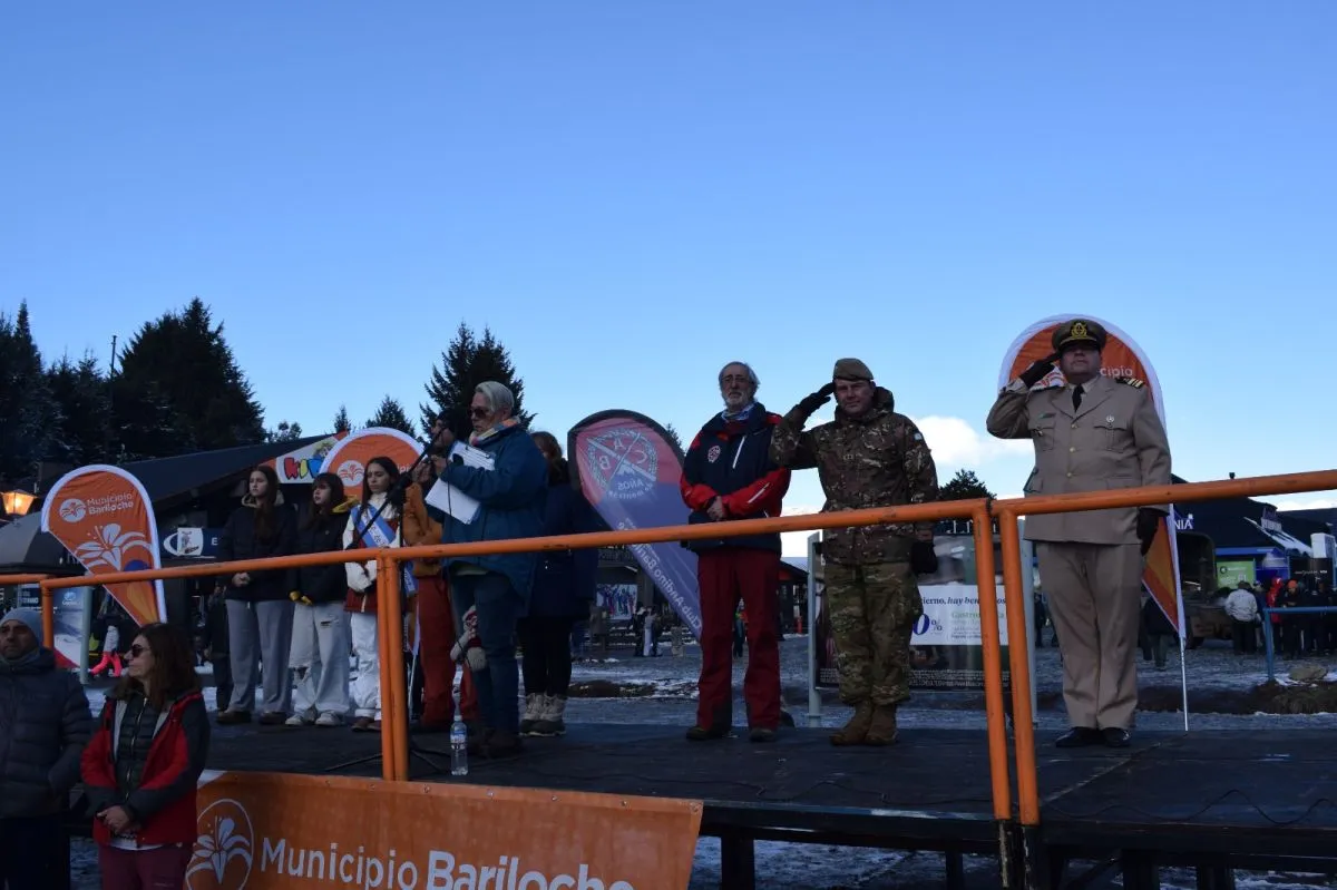 Integrantes de la Escuela Militar de Montaña Teniente General Juan Domingo Perón participaron del desfile del día del Montañés en la base del cerro Catedral y este lunes una ceremonia en la Plaza de Armas de la institución.
