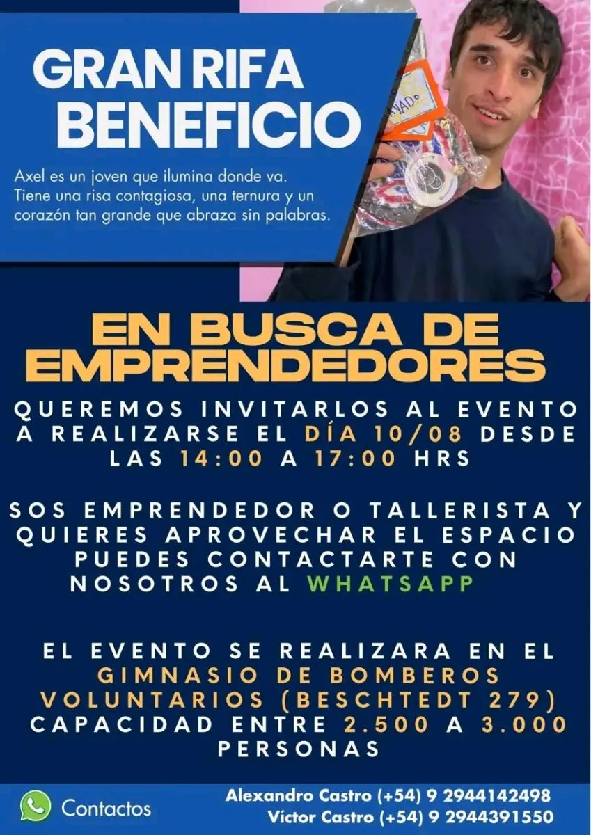 Axel tiene una discapacidad y su familia impulsa una actividad abierta a la comunidad para visibilizar su situación y juntar fondos. Habrá shows, feria y sorteos.