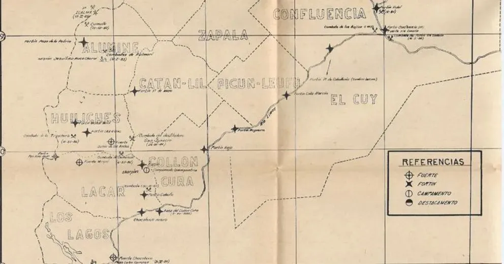 La anotación del 6 de enero de 1883 no deja dudas sobre la ubicación de la primera presencia argentina en la zona del Nahuel Huapi. El autor del diario, teniente Oliveros Escola la precisó así: “La tercera brigada está acampada al Sudoeste del Paso Cabo Campos (río Limay), poco menos de una legua sobre el arroyo Chacabuco, quedando por dicha situación a una legua sobre la costa Norte del gran lago”, es decir, a cinco kilómetros.