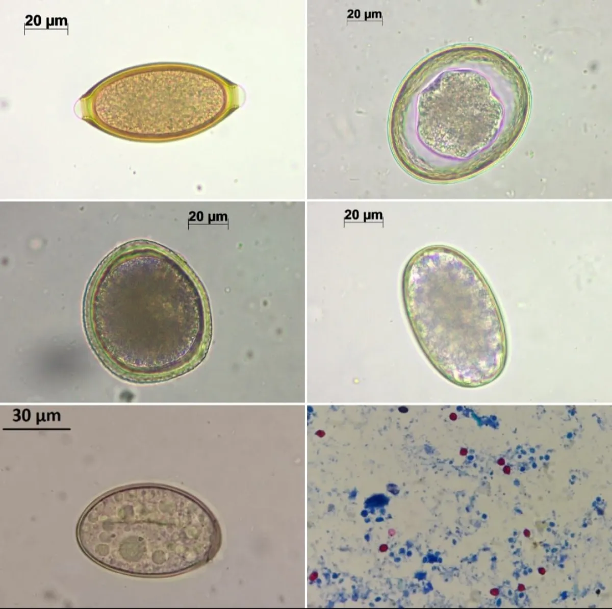 Son huevos y quistes de parásitos que se encuentra en la materia fecal de los perros.