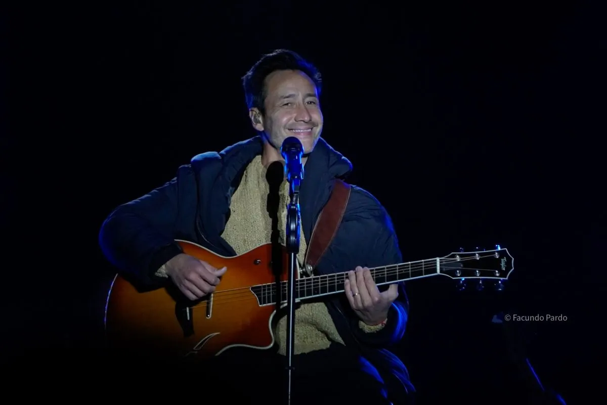 Tras la apertura oficial, el cantante salió al escenario entre ovaciones y, a pedido del público, abrió su presentación con “Voy a brindar”. Con un camperón abrigado y una sonrisa cómplice, saludó con un “Buenas noches Bariloche” que marcó el inicio de una lista de temas que combinó clásicos, nuevas canciones y momentos de intimidad musical.