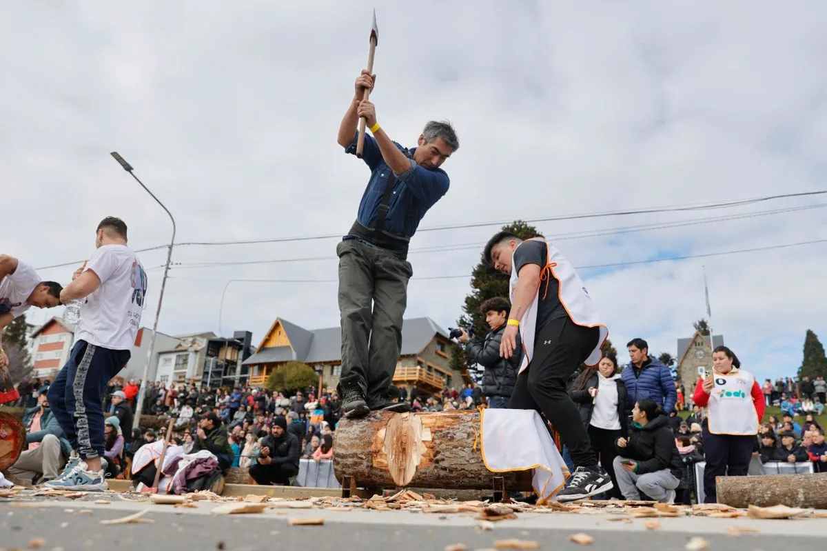 Fernando Quijada (apellido que se repite en cada coronación del concurso) se convirtió en el primer finalista del Concurso de Hacheros, que reunió a una multitud en Avenida 12 de Octubre, en la costanera barilochense.