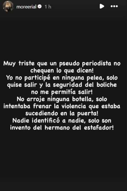 Apenas la noticia tomó vuelo, diferentes programas de espectáculos replicaron los detalles, incluyendo el ciclo de Carmen Barbieri en El Nueve. Mientras se comentaban los hechos en televisión, Morena siguió la cobertura y eligió intervenir desde sus historias de Instagram, lo que encendió aún más la controversia y llamó la atención de sus seguidores.
