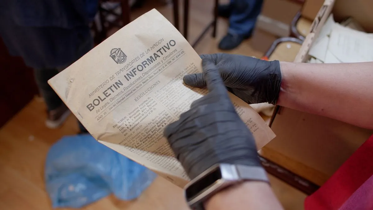 El IIDyPCa designó a un equipo de investigadoras para realizar las tareas de desinfección y traslado de los documentos, que fueron guardados en un repositorio de la Universidad. En esta primera expedición se reunieron aproximadamente treinta bolsas de material, que permanecen bajo la guarda de la UNRN hasta la actualidad.