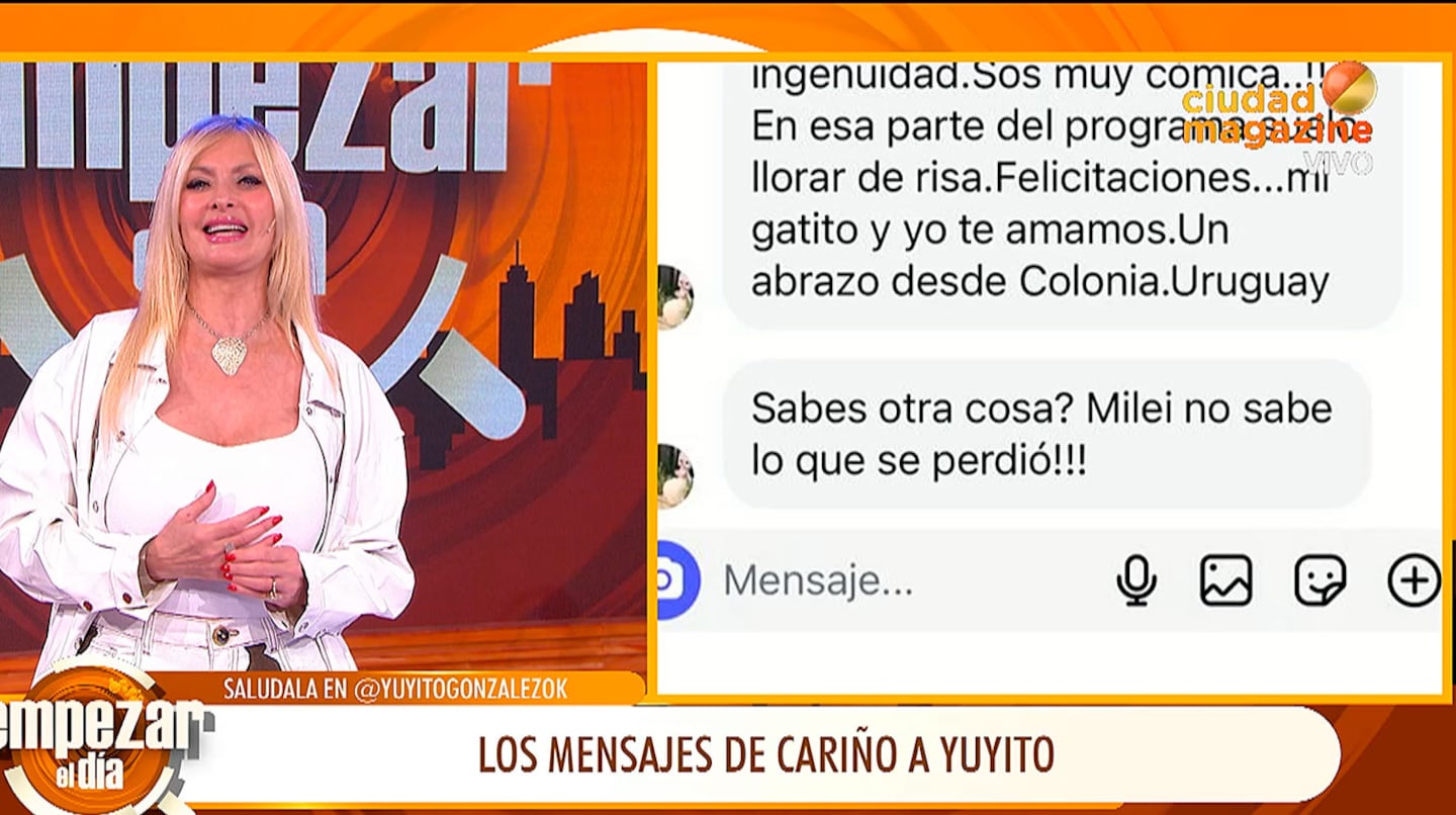 El episodio ocurrió en Empezar el Día (Ciudad Magazine), cuando el locutor compartió un mensaje que había llegado de una televidente. El comentario mencionaba directamente al mandatario y, lejos de esquivar el tema, Yuyito González reaccionó con un guiño que dio pie a las interpretaciones por la posibilidad de que este amor vuelva a consolidarse.