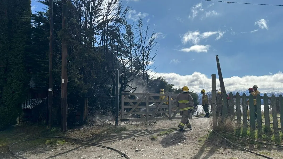 Susto por incendio en un cerco en la zona del Varadero del Parque Nacional Nahuel Huapi (fotos: Asoc. Bomberos Voluntarios Bariloche).