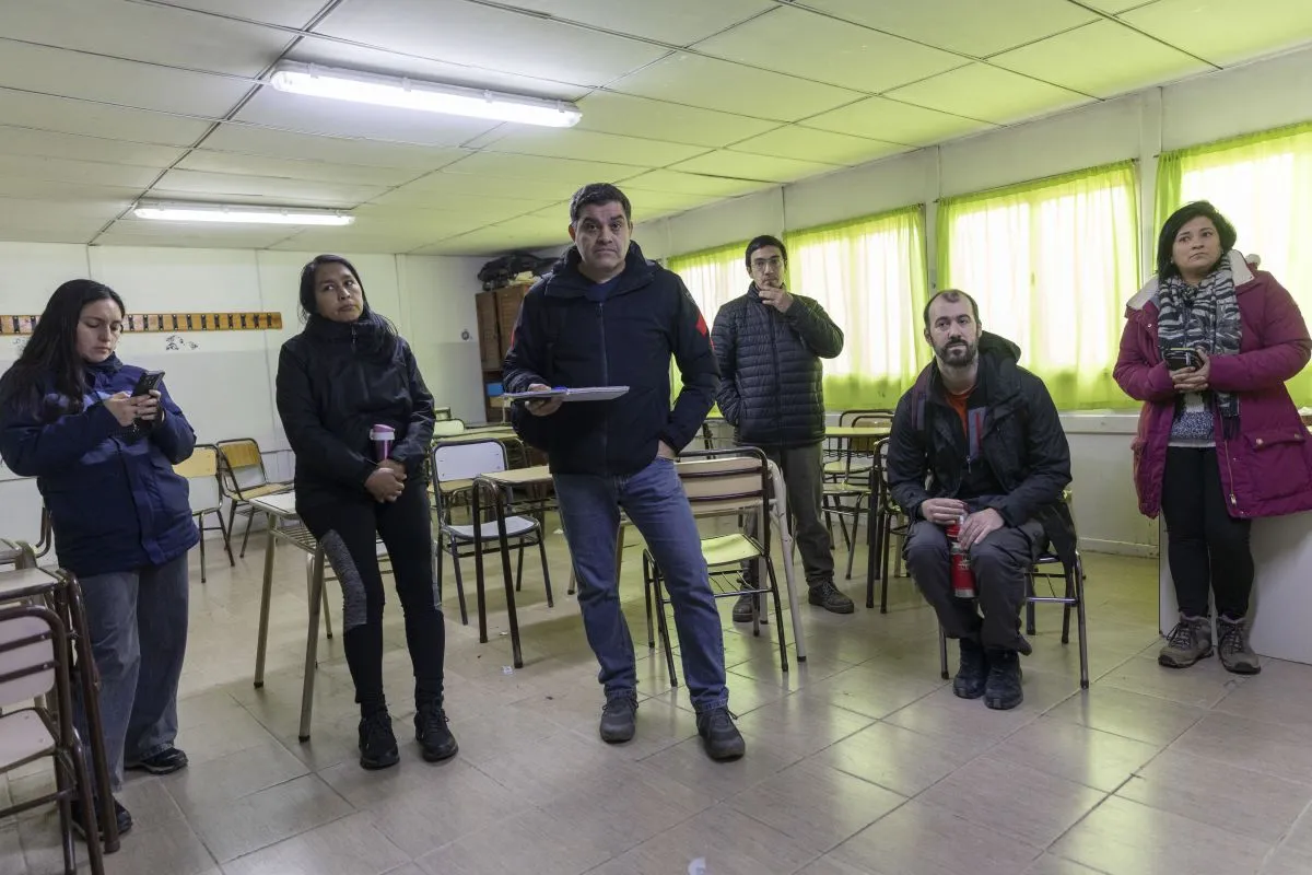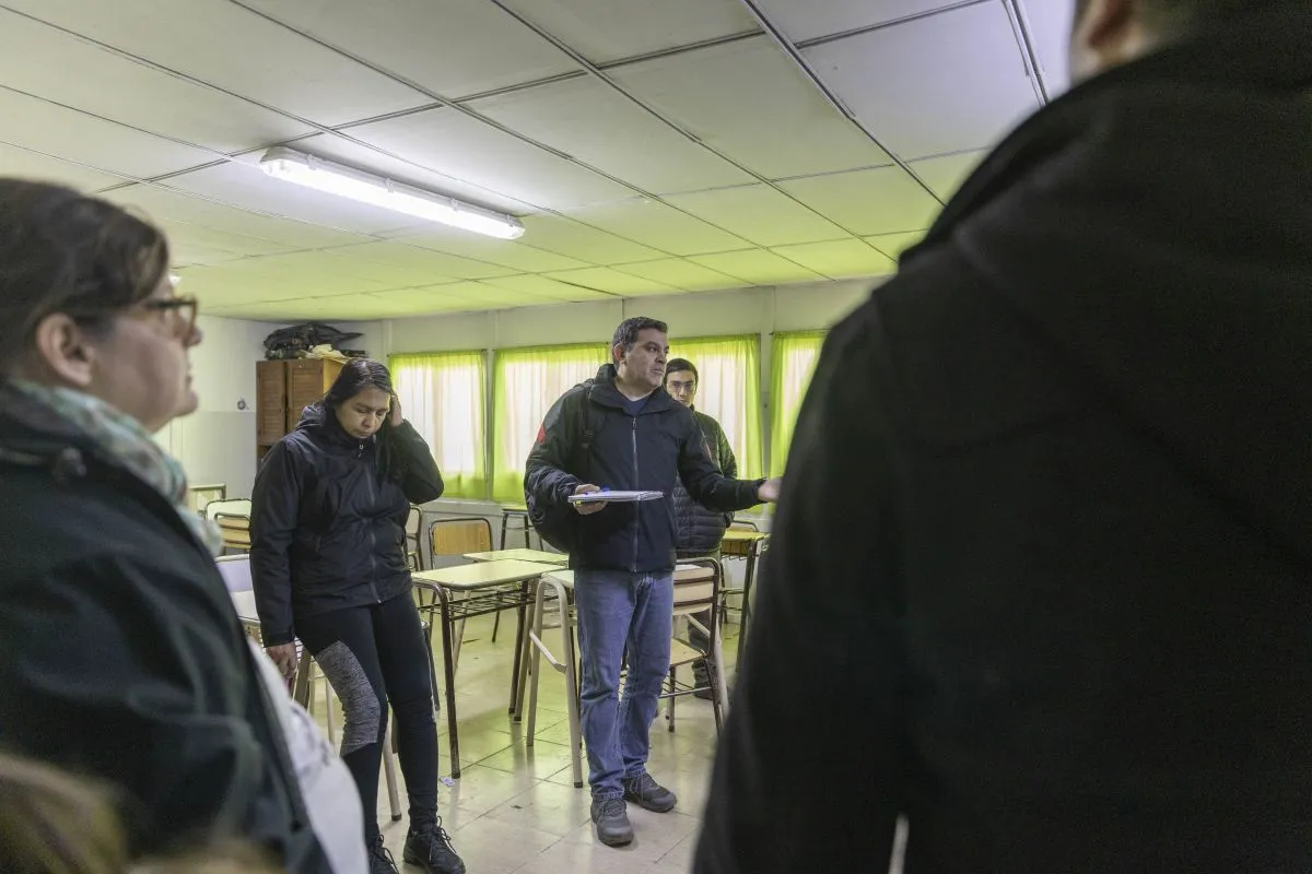 El listado de falencias y trabajos a realizada por un perito contratado por el sindicato docente y por un perito del Consejo Escolar. Los dos porteros, Juan Sandoval y Francisco Ñanco guiaron “la recorrida”.