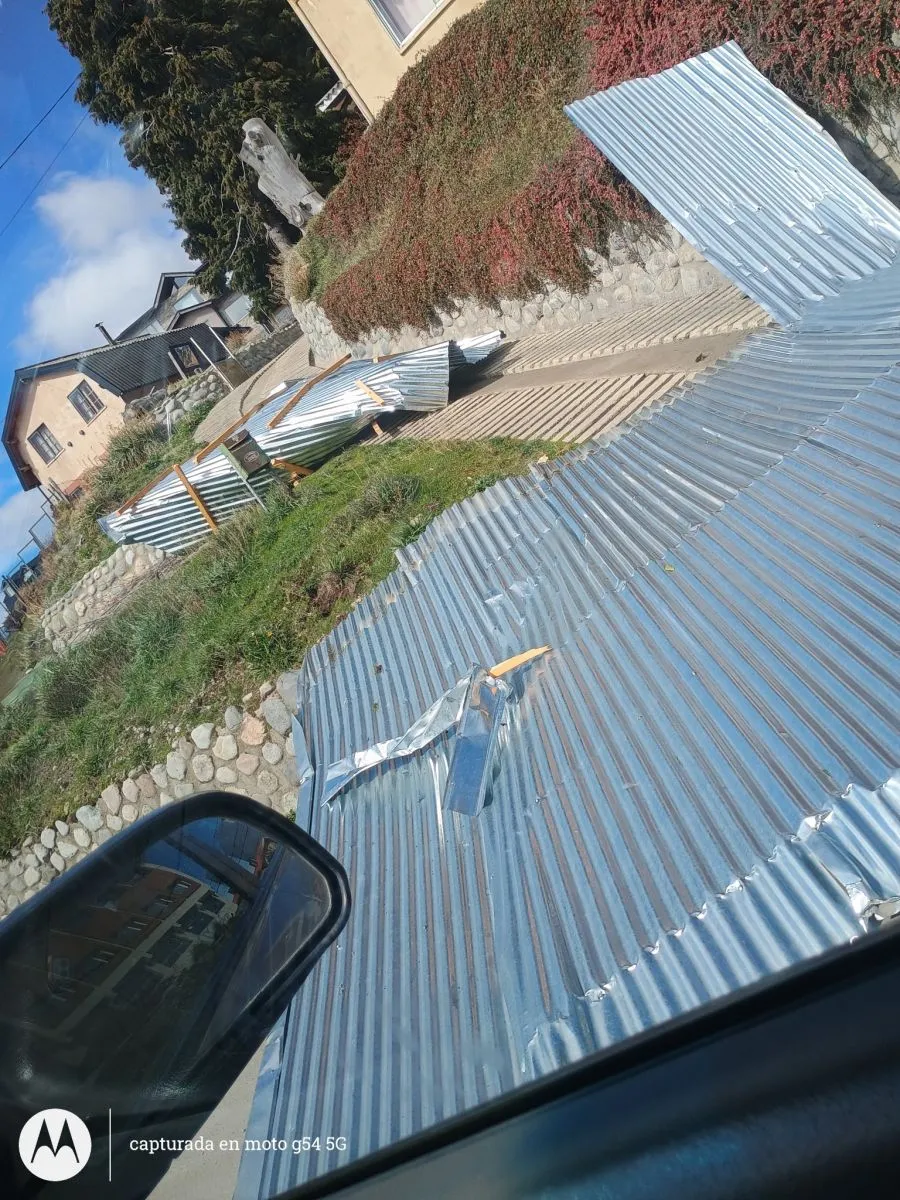 Las intensas ráfagas de viento que alcanzan 120 km/H afectan a viviendas de la ciudad. En Segundo Sombra casi 9 de Julio se voló completamente el techo de una vivienda, la estructura de chapa terminó sobre la vereda.