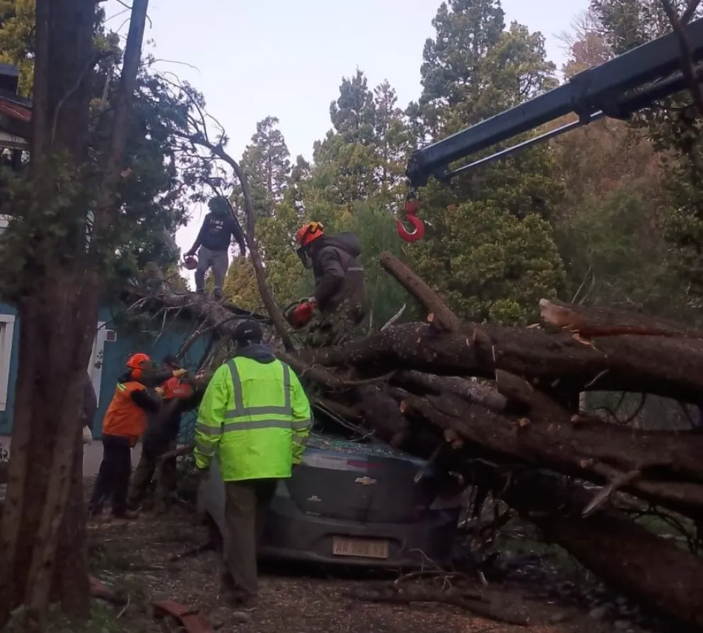 El temporal de viento en Bariloche dejó además techos volados, un vehículo destruido por la caída de un árbol, en la zona de lago Gutiérrez, en el sur de la ciudad.