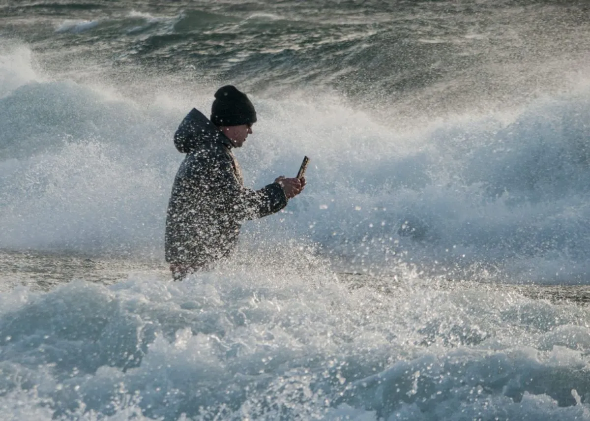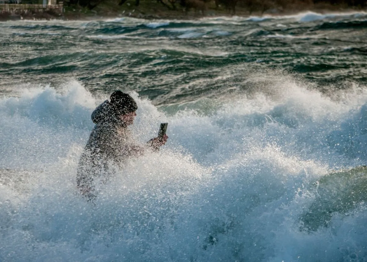 Se metieron al Nahuel Huapi a grabar las olas en pleno temporal: el resutado se hizo viral