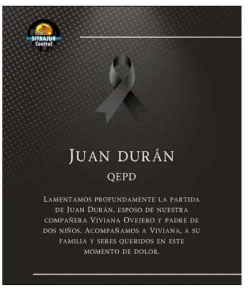 Desde Sitrajur también enviaron condolencias y apoyo a su esposa, que forma parte de la comunidad judicial provincial. “Lamentamos profundamente la partida de Juan Durán, esposo de nuestra compañera Viviana Ovejero y padre de dos niños”, expresaron.