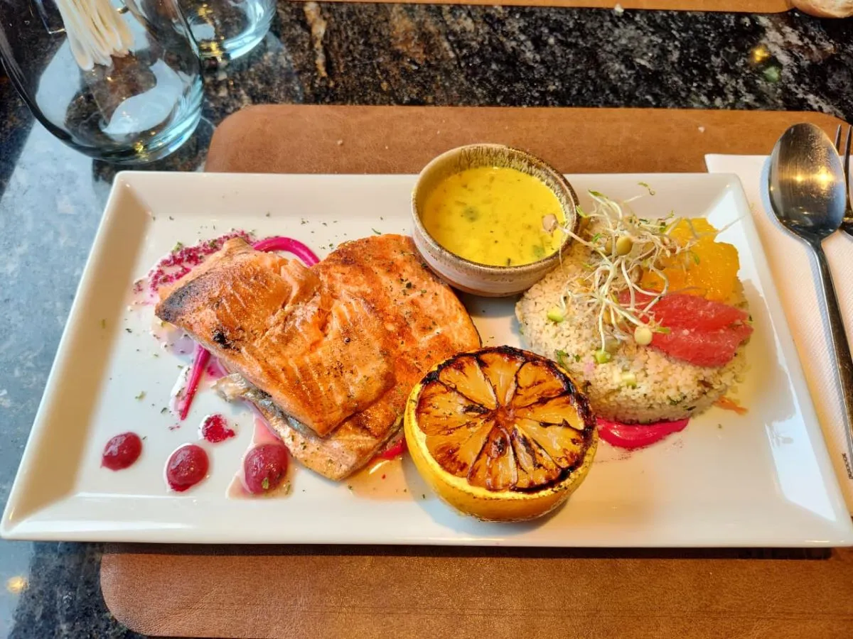 Una de las propuestas barilochenses fue la de Refugio Knapp, en Villa Catedral, con trucha al hierro con crema de cúrcuma, cítricos a vivo y ensalada tabulé.