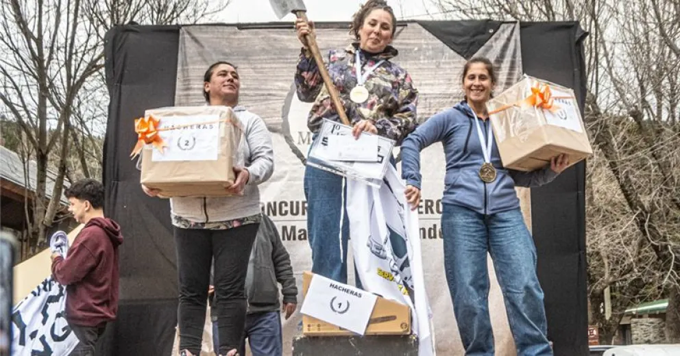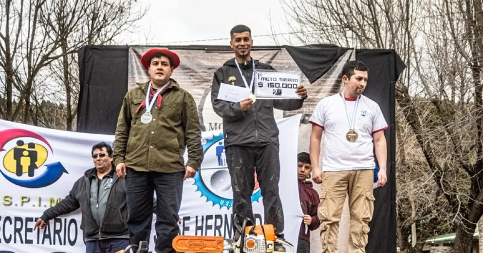 Luego fue el turno de las motosierras donde el podio quedó conformado de la siguiente manera: Brian Ordenez Veliz (Barrio Cantera), Ariel Oscar Matamala y Fabio Torres (Abra ancha, Aluminé).