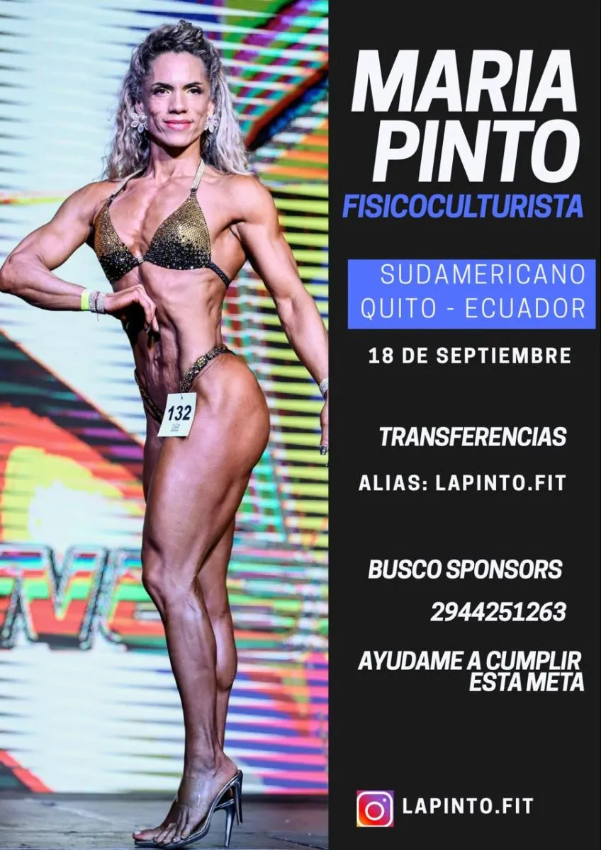 María Antonieta Pinto compitió la semana pasada en el Campeonato Argentino de la Federación Argentina de Musculación y Fitness, donde logró la medalla de Plata de la categoría Senior y la de bronce en máster. Con el subcampeonato, pudo acceder al Sudamericano que se va a realizar en Ecuador, del 22 al 25 de septiembre.