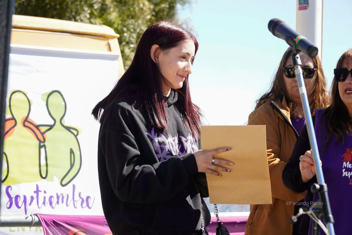 Norma Taboada, ex concejal y miembro de la Mesa 6 de Septiembre, entregó el reconocimiento a Camila (Fotos: Facundo Pardo)