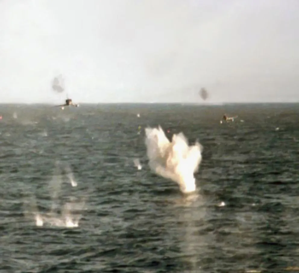 Sobre el sentimiento que lo abordó al observar —desde lejos— las imágenes, manifiesta: “Excedió lo que uno podía esperar. Ver ese avión volando rasante sobre el agua, como se lo hacía en el momento del ataque… Porque esa era la altura aproximada en que volábamos. Como prueba está la foto que nos sacaron, al teniente Carlos Rinke y a mí, el 25 de mayo de 1982”.