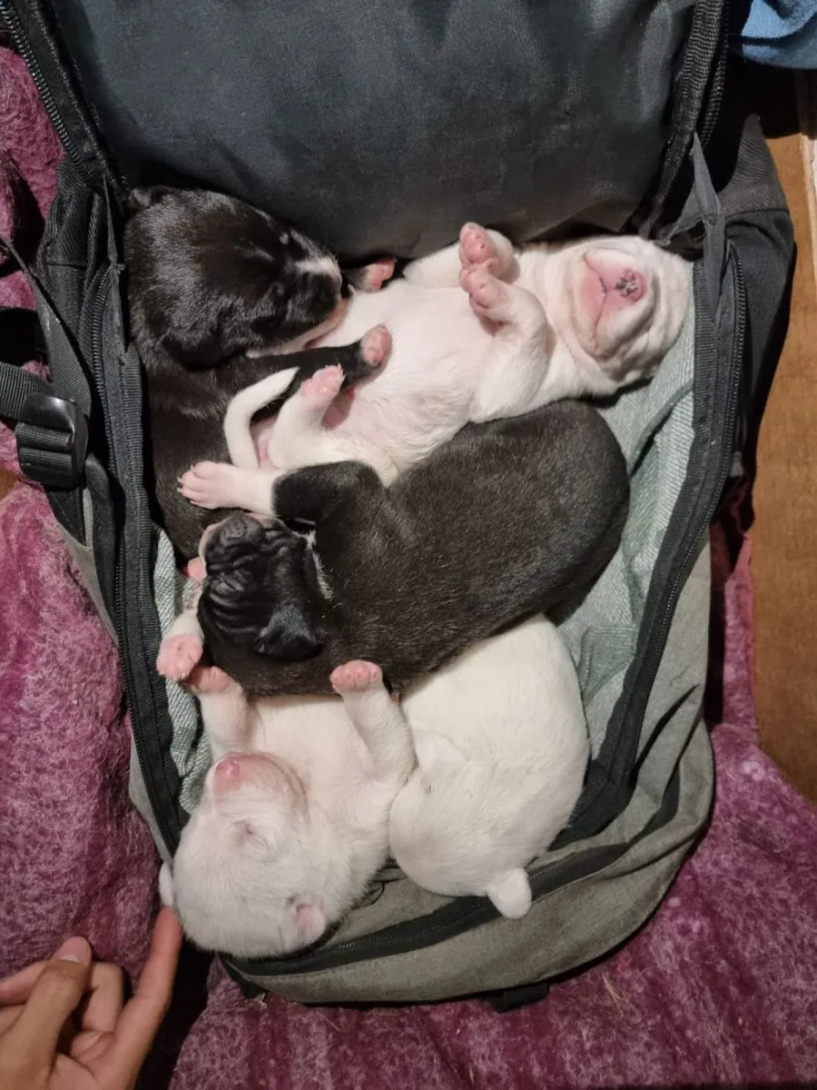 Cachorros encontrados en una cueva, fueron criamos a mamadera.