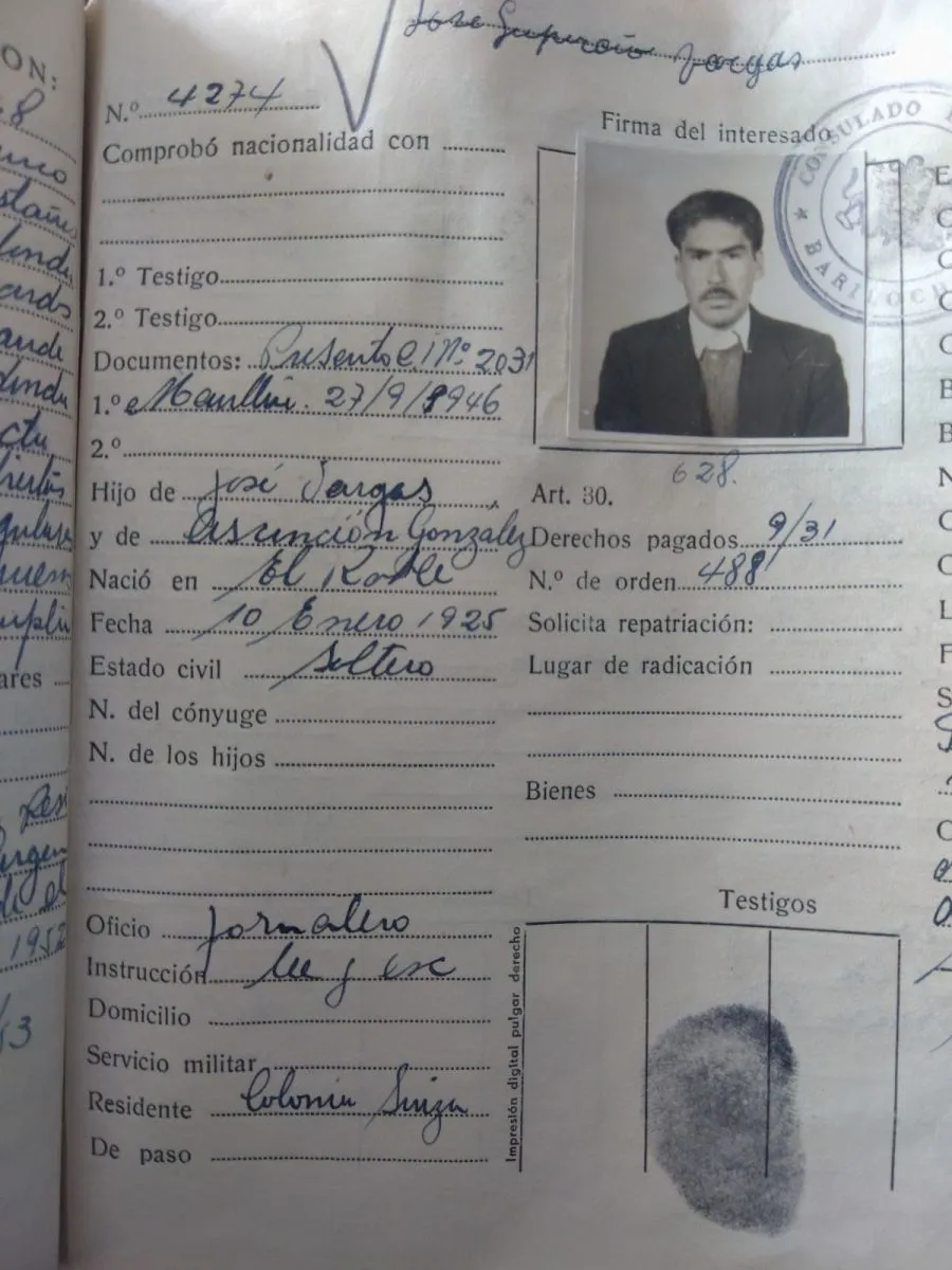La madeja comenzó a desenrollarse cuando el segundo quiso acceder a datos sobre su abuelo, José Lupercio Vargas, “dos cónsules atrás”. En aquella ocasión, el recordado Diego Velasco von Pilgrim confió que era intención de la sede diplomática avanzar en la digitalización de “los libros de matrículas consulares”, un voluminoso conjunto de registros que estuvo al margen del conocimiento público hasta hace poco.