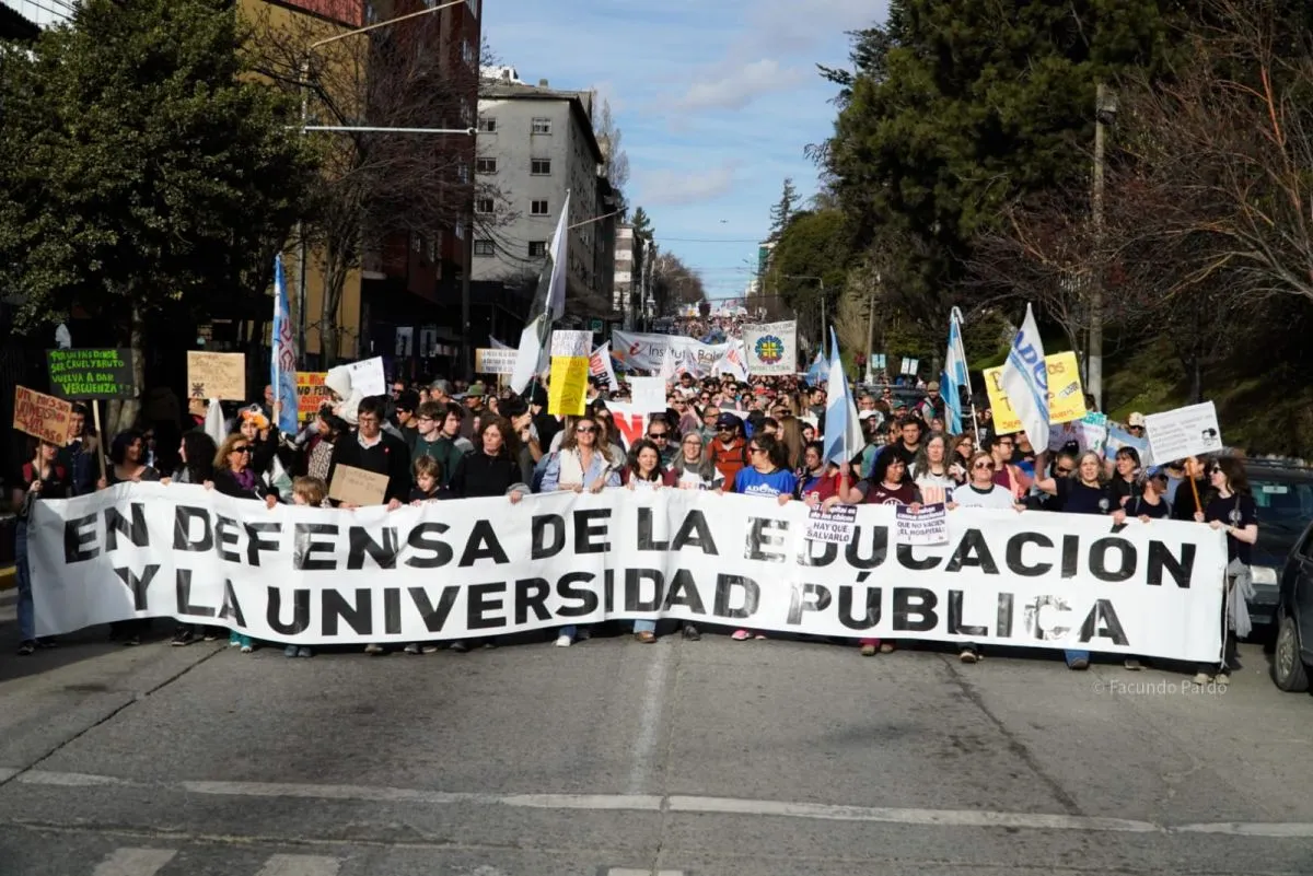 Estudiantes, docentes y comunidad educativa en general de las Universidades Públicas Nacionales en Bariloche como Universidad del Comahue, Río Negro, Instituto Balseiro y Frente Unviersitario, así como gremios y referentes sociales comenzaron la manifestación en las calles, un reclamo contra el Gobierno Nacional, por el desfinanciamiento que afecta a la Educación Pública; la situación actual de los jubilados y "a llenar las calles por la tarde  para dar vuelta el veto a las leyes de emergencia pediátrica y financiamiento universitario", detallaron.
